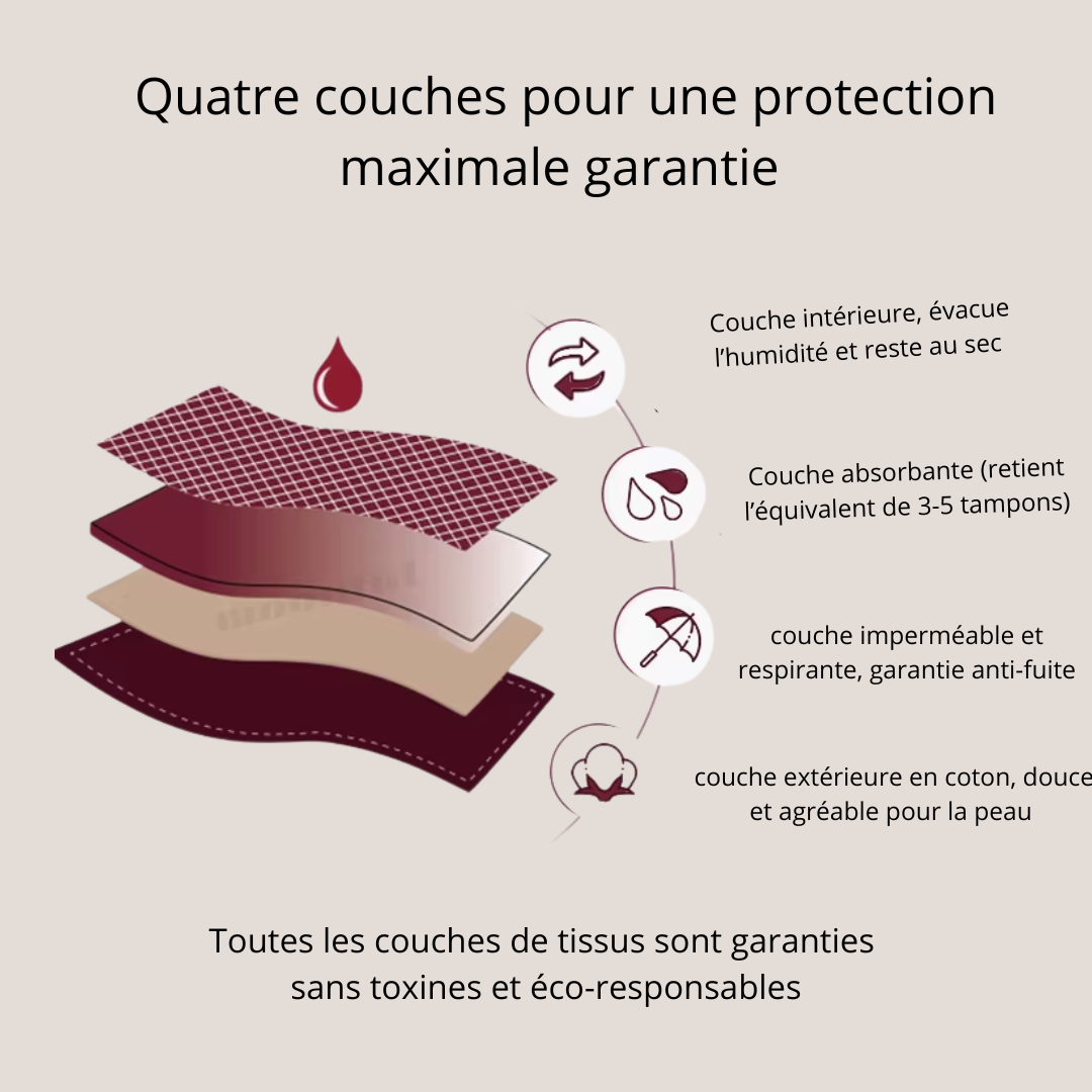 protection exceptionnelle contre les flux abondants grâce à leurs 4 couches de tissu.